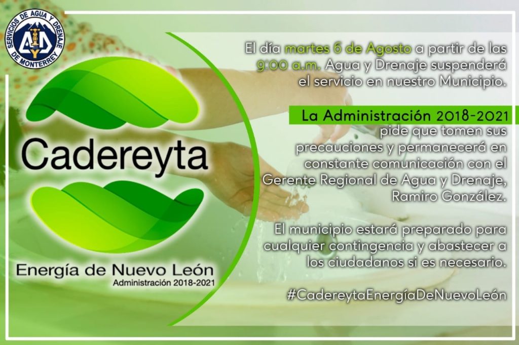Ante esta situación el municipio de Cadereyta distribuyó en redes sociales un post o comunicado, asegurando estar en contactos con el gerente regional de AyD, Ramiro González y que contará con pipas en caso de ser necesario para abastecer del vital líquido a los jimenences.