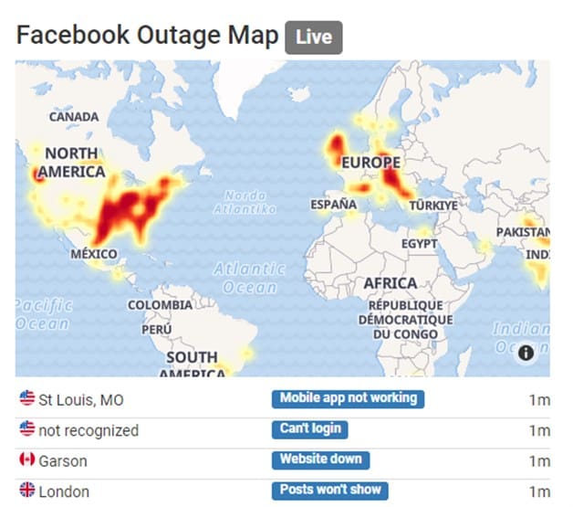 Se Caen Facebook, instragram y WhastApp
