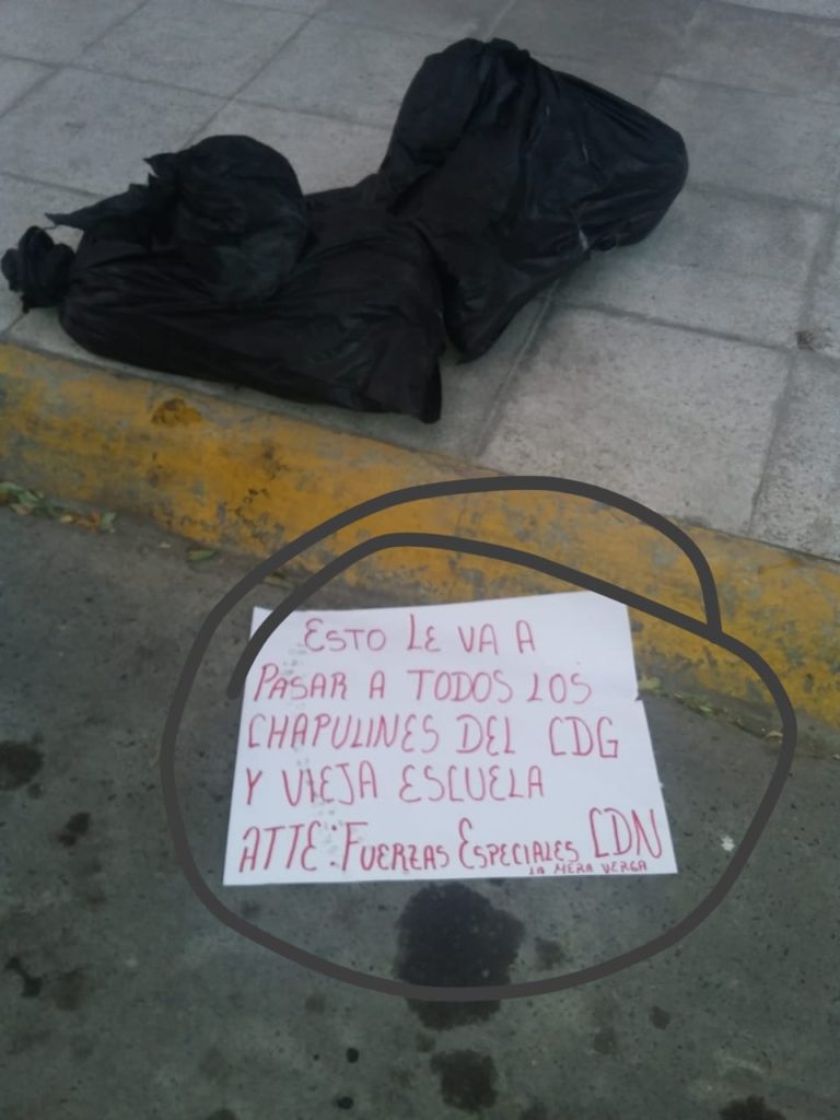 Tiran cuerpo desmembrado en dos bolsas negras y dejan mensaje frente a la Presidencia Municipal de Zuazua amenazando a integrantes de otro grupo criminal.