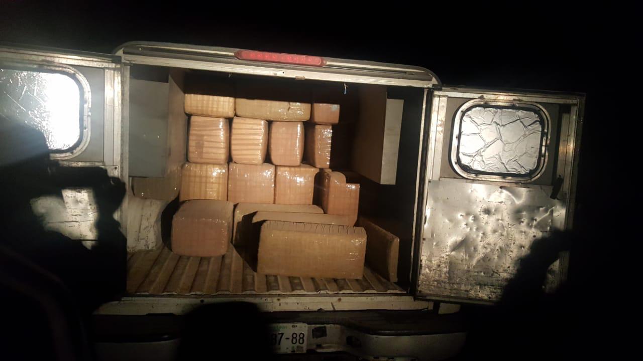 Al llegar los efectivos se percataron que al interior del vehículo GMC placas de circulación SMD 87 88, se localizaban entre 40 y 50 paquetes encintados en color canela.