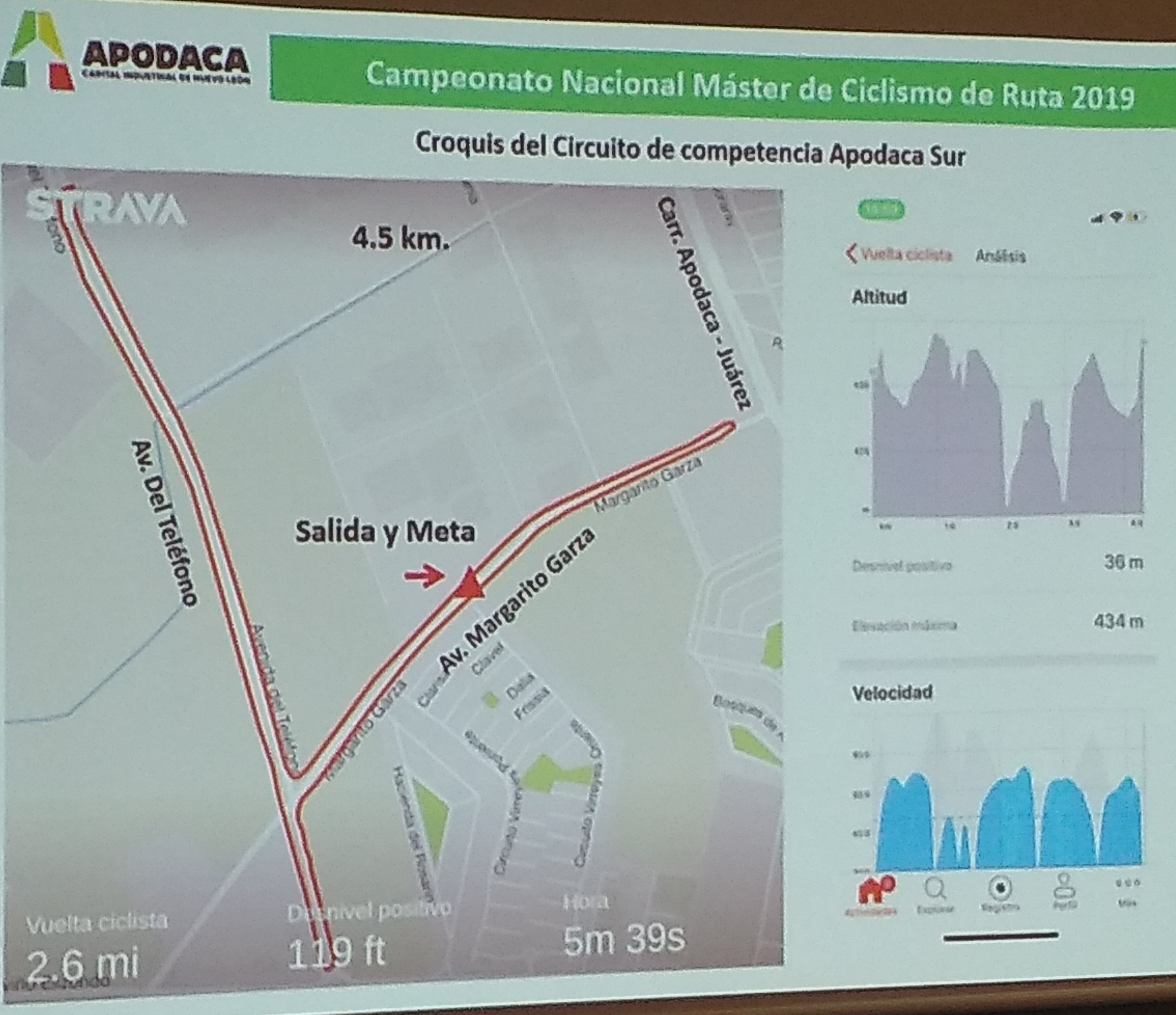 El Campeonato Master Apodaca 2019 se realizará en un circuito de 4 kilómetros y medio con tres vueltas, recorriendo calles importantes del municipio como Avenida Teléfonos y la carretera a Juárez y se llevará acabo este próximo sábado 10 y domingo 11 de Agosto.