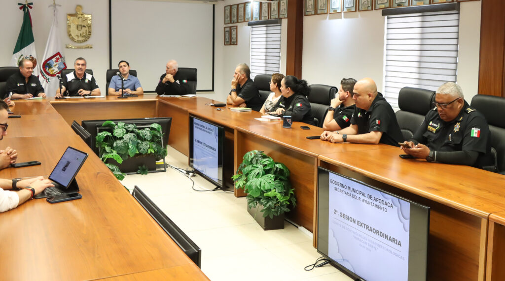 Al presidir la Sesión del Comité de Contingencias Hidrometeorológicas, el alcalde César Garza Villarreal informó que las diferentes Secretarías de Apodaca ya se encuentran trabajando en las zonas de riesgo que se tienen identificadas en el Municipio.