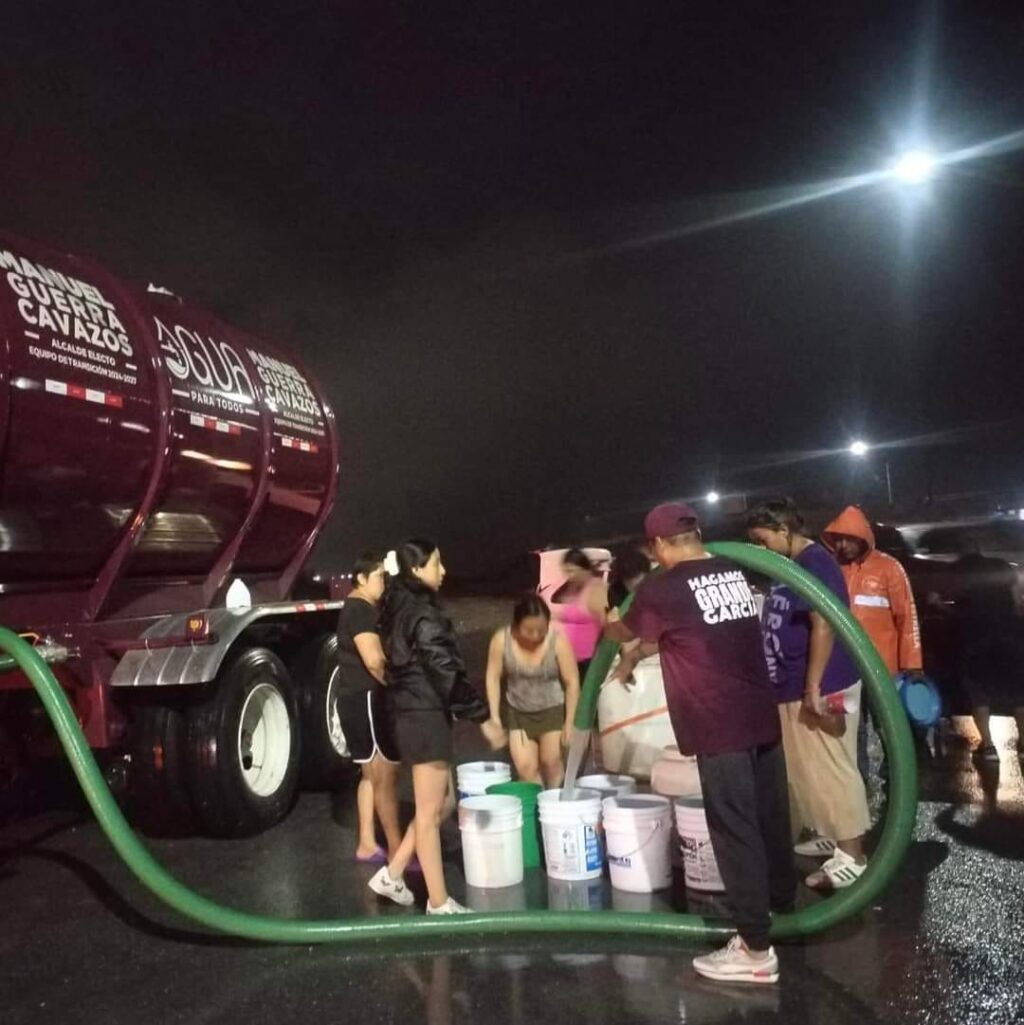 Además el alcalde electo de García, Manuel Guerra Cavazos, continúa brindando apoyo a través de la distribución permanente de pipas de aguas en colonias con reporte de falta de suministro, así como también la entrega de cientos de garrafones de agua potable para las personas que no cuentan con el vital líquido en diversas colonias de García.