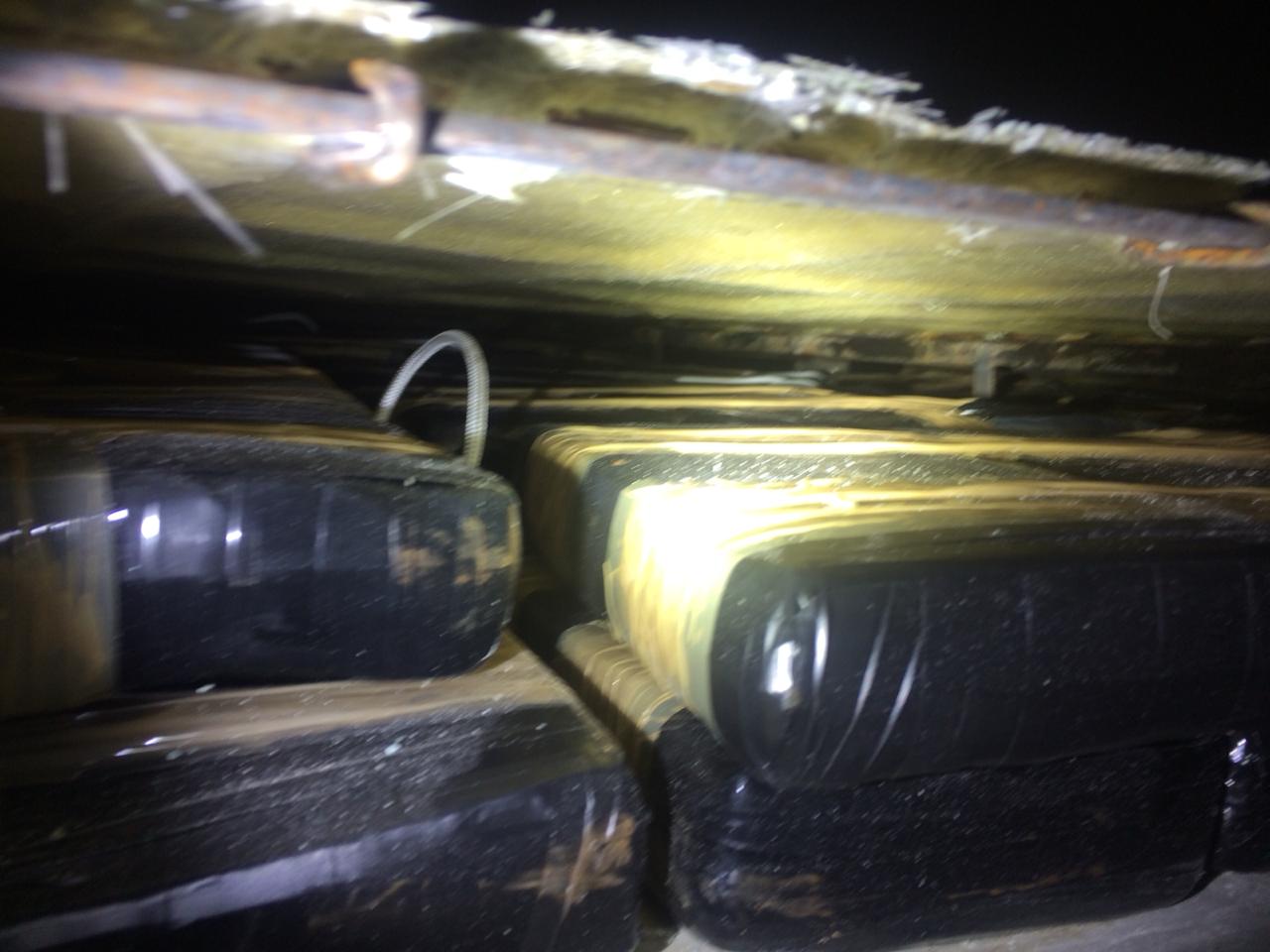 Decomisan en Galeana 240 kilos de cocaína en el municipio de Galeana al detectarla en el toldo de un tráiler con el escáner del reten de Seguridad Pública del estado.