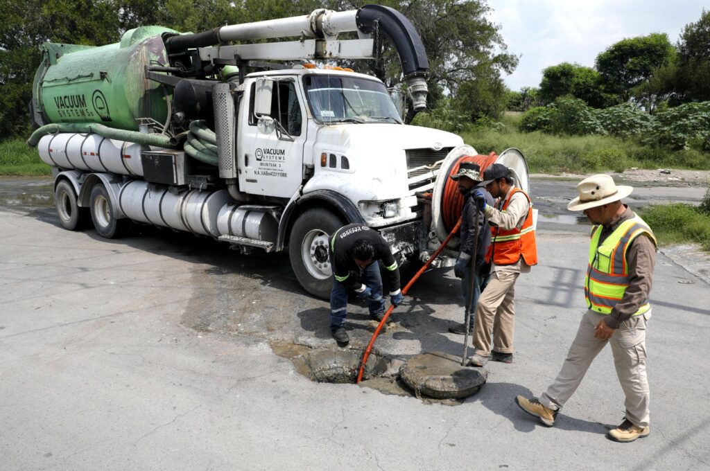 El Municipio de Escobedo sumó esfuerzos con Agua y Drenaje de Monterrey para dar mantenimiento al sistema de drenaje sanitario y reparar las fugas de aguas negras que se han generado en los últimos días tras las recientes lluvias en diversas zonas.