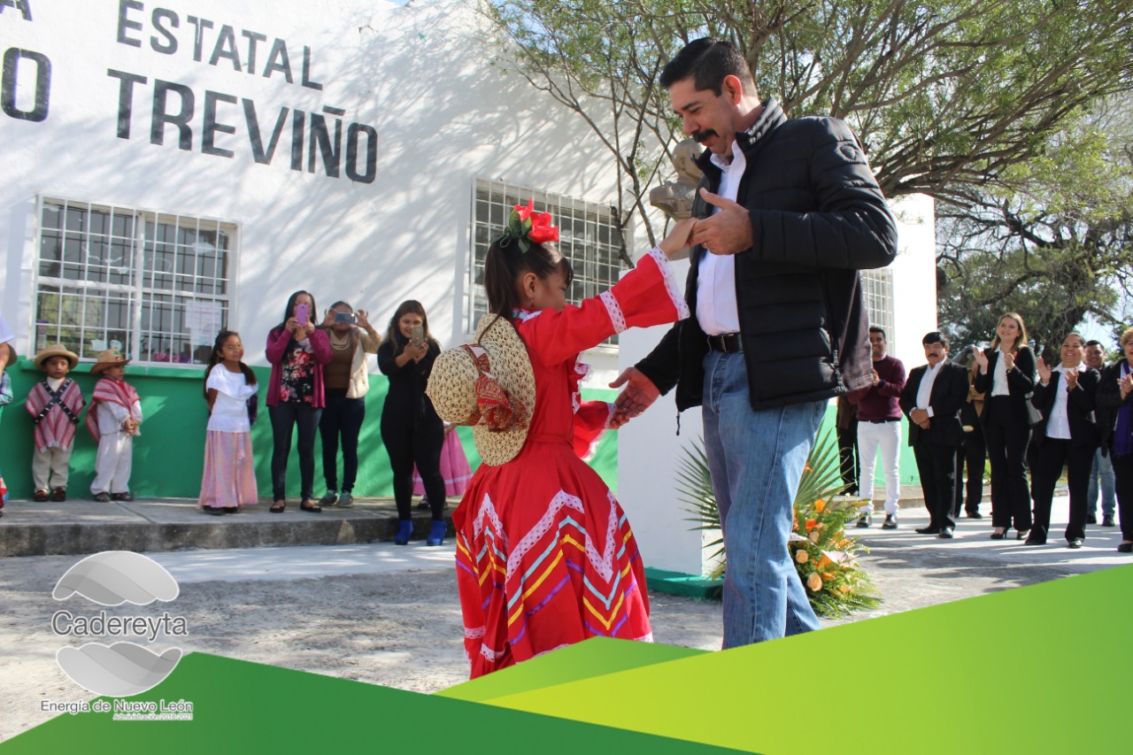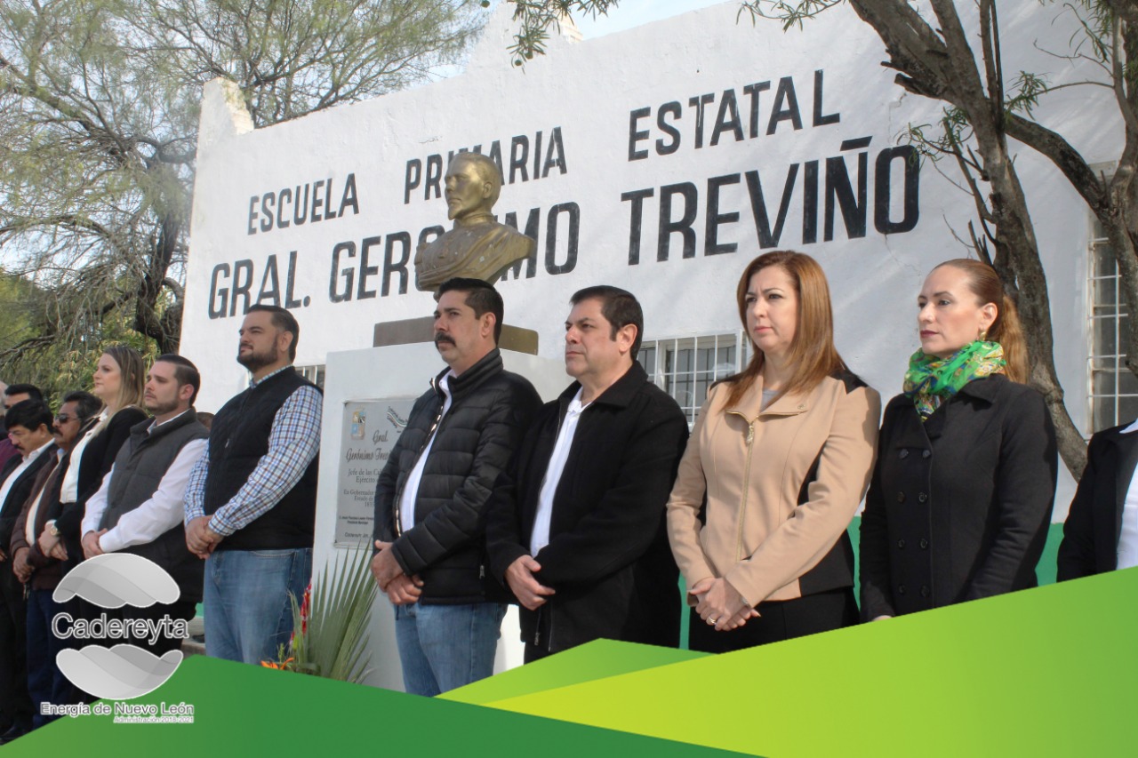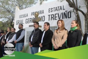 Posteriormente se dirigieron a la Escuela Primaria Gral. Gerónimo Treviño ubicada en la Hacienda Gerónimo Treviño para realizar las guardias de Honor ante el monumento.