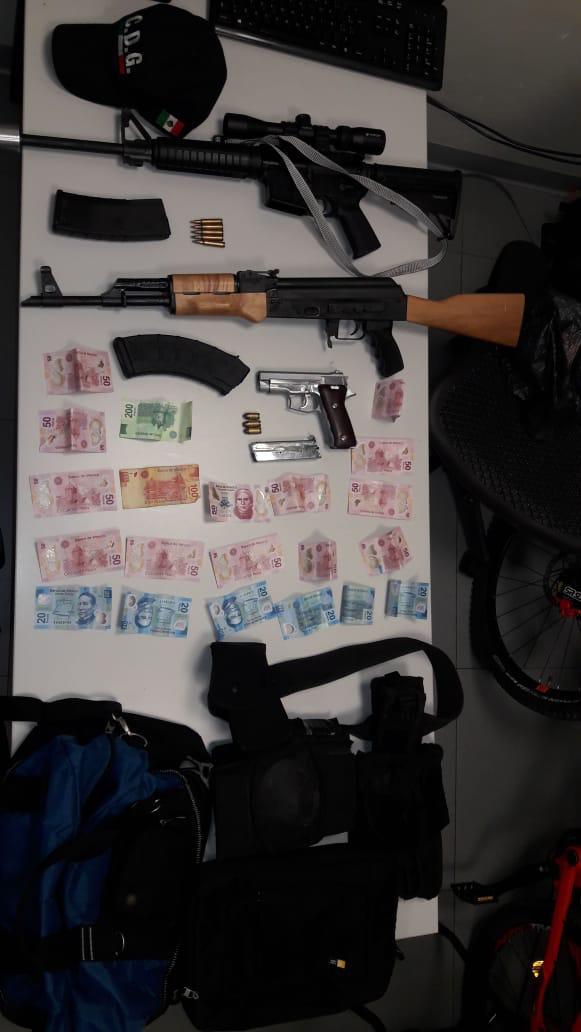 En esos lugares los elementos de la Fiscalía General de Justicia de Nuevo León decomisaron armas, drogas, equipo táctico y dinero en efecto, logrando la detención de 23 personas que son parte de una célula del Cártel del Golfo con presencia en Tampico y Altamira Tamaulipas.