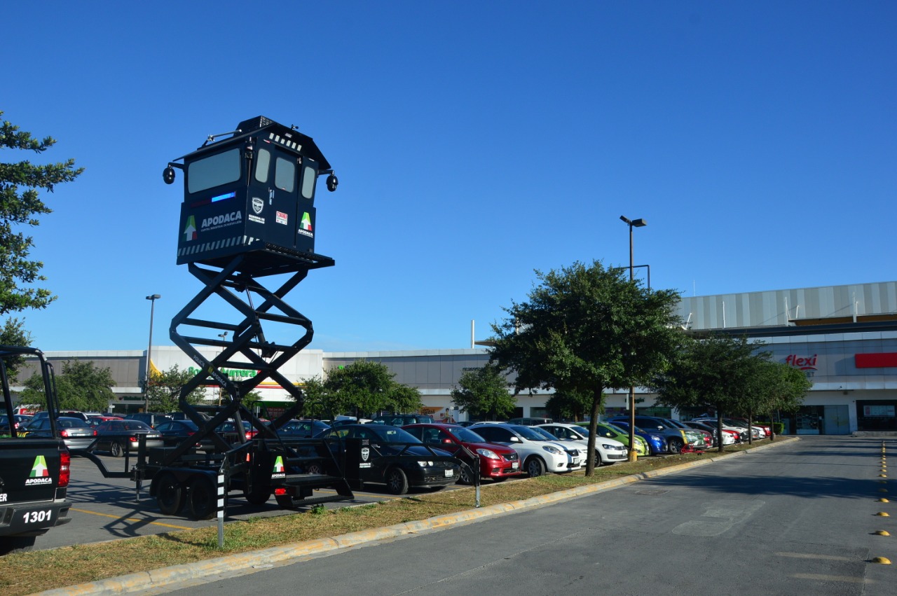 Como parte de las estrategias implementadas para reforzar la prevención de cristalazos a vehículos en lugares públicos, la Guardia de Proximidad Apodaca puso en marcha un Programa en el que se utilizan torres de vigilancia en los estacionamientos de diferentes centros comerciales del municipio.