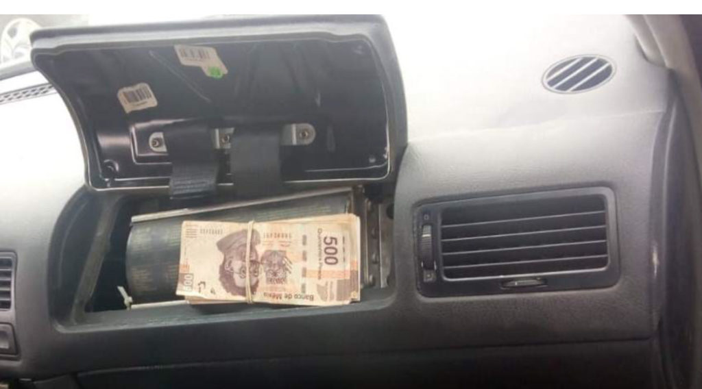 Cuando uno de los oficiales colocó su mano en el tablero y se apoyó para revisar el interior, el compartimento donde debía estar la bolsa de aire del Jetta se cayó y en el interior se localizó el dinero.