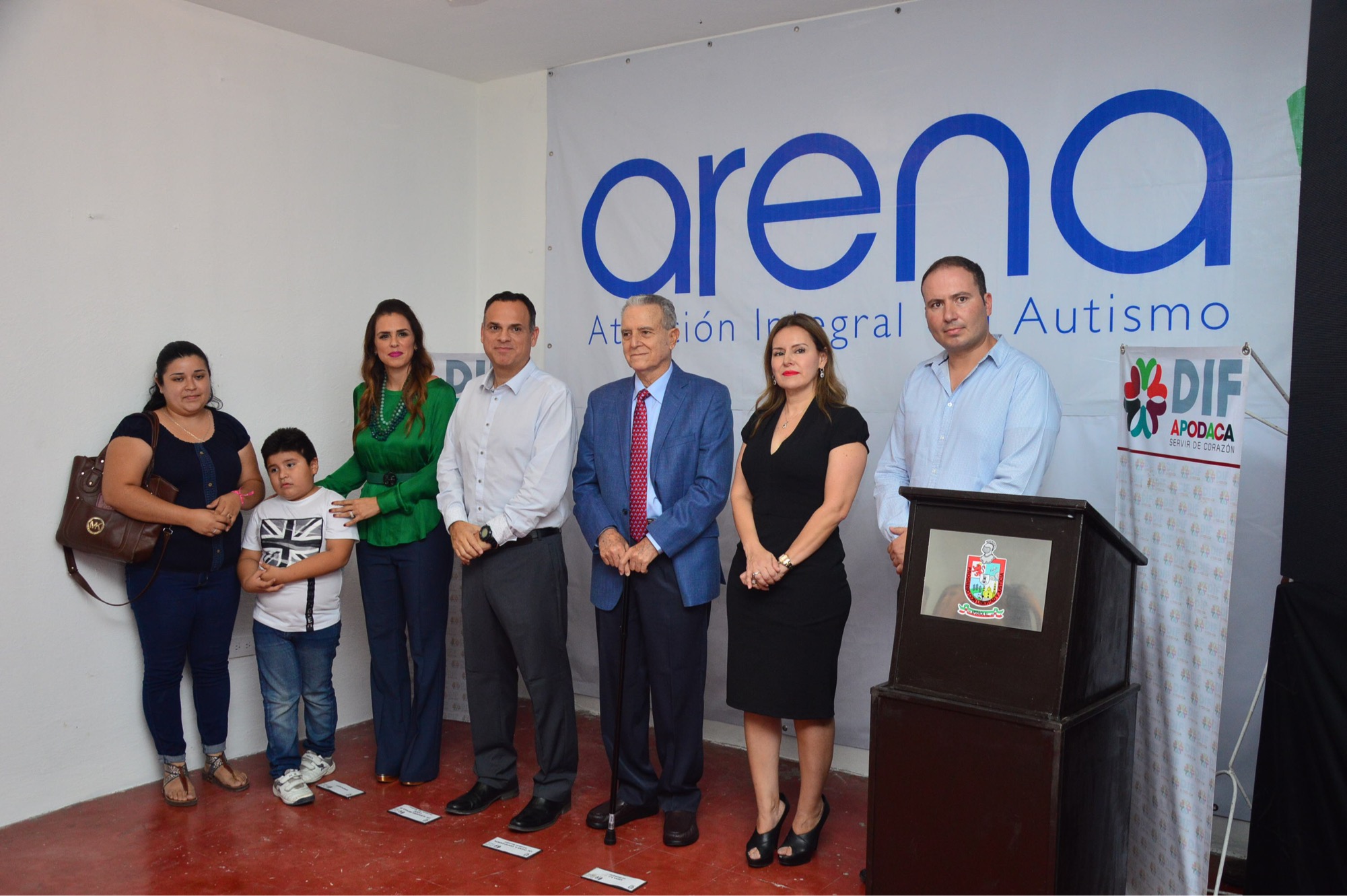 El evento fue encabezado por el alcalde Óscar Cantú y la presidenta de DIF Apodaca, Alejandra Ortega de Cantú, quienes acompañados por Alejandra Cadena y Elisa Ávila fundadoras de Arena, además de miembros del patronato de Arena, realizaron el corte de listón y develaron la placa externando su voluntad y acciones para seguir trabajando en este tema