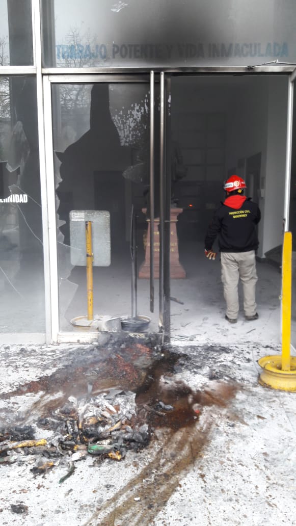 Al lugar acudieron elementos de Protección Civil y Bomberos para sofocar el fuego que solo provocó daños en las puertas de cristal.