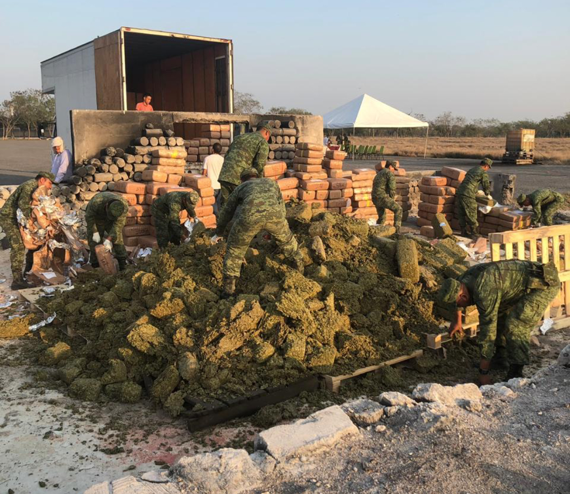 Personal de la Fiscalía General de la República (FGR) en Nuevo León, en coordinación con elementos de la Secretaría de la Defensa Nacional (SEDENA), incineró más de tres toneladas 400 kilos de narcóticos relacionados con siete carpetas de investigación.