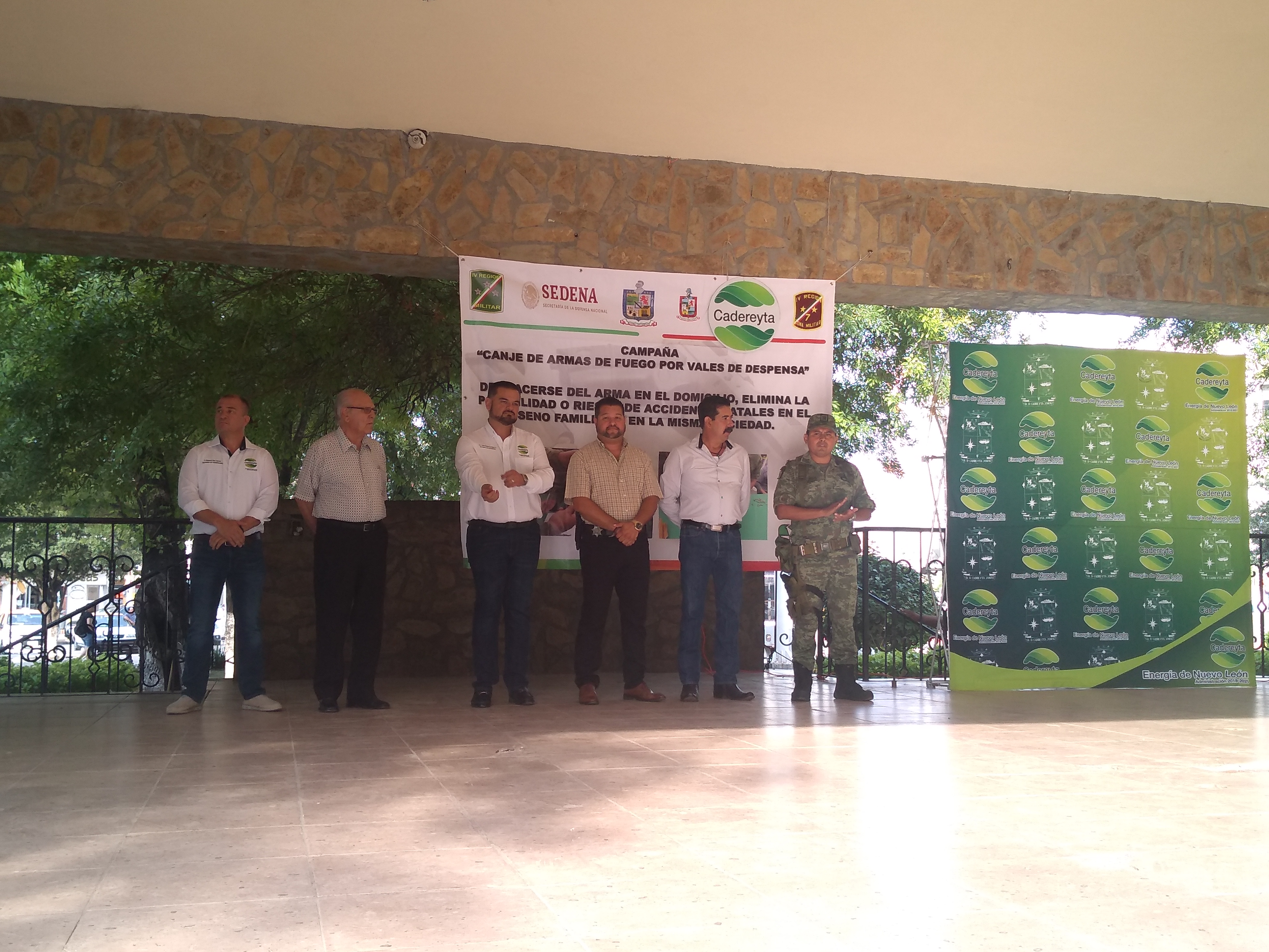El municipio de Cadereyta Jiménez y la SEDENA realizan canje de armas por vales de despensa con el objetivo de evitar accidente caseros o que sean utilizados para delinquir.