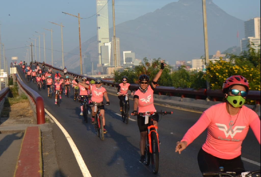 Las mujeres en sus bicicletas y vestidas con blusas en color rosa, tomaron el circuito deportivo habilitado en los carriles exprés de las avenidas Constitución y Morones Prieto desde las avenida Revolución hasta Gonzalitos, para conmemorar el Mes de Sensibilización sobre el Cáncer de Mama.