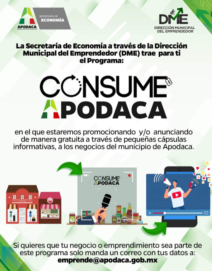 Las personas que deseen que su emprendimiento sea parte de este programa pueden mandar un correo con los datos a: emprende@apodaca.gob.mx y en redes sociales con los hashtags #ReactivaciónEconómica, #MarketingDigital y #Emprendedores.