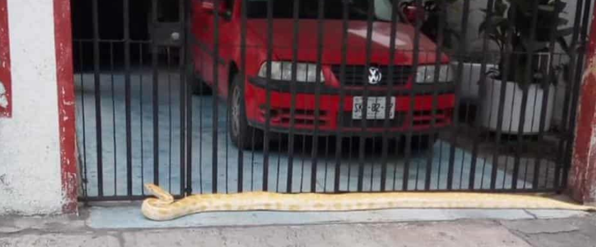 La serpiente fue descubierta por vecinos de la colonia Villas de San Miguel, quienes aseguraron que pertenecía a un habitante del sector.
