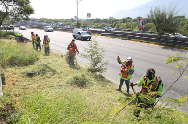 Desde temprana hora del sábado, personal de la Secretaría de Servicios Públicos del Municipio de Guadalupe intensificó labores de deshierbe en camellones y calles laterales en las principales avenidas de la ciudad.