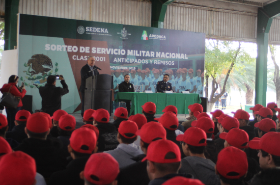 El Sorteo fue presenciado por el Secretario de Ayuntamiento, Héctor Morales Rivera; el Capitán Segundo de la Fuerza Aérea, Martín Hernández, en representación de la SEDENA y el Coordinador de la Junta Municipal de Reclutamiento, Carlos García Martínez, en la Unidad Deportiva “Centenario del Ejército Mexicano”, hasta donde acudieron los jóvenes que cumplirán con su servicio durante 41 sábados, o reclutarse por tres meses, conforme hayan salido sorteados con bola blanca o negra.“EN 1938, siendo Presidente de la República, el General Lázaro Cárdenas del Río y ante la amenaza de que nuestro país tomara parte en la Segunda Guerra Mundial, se creó la Ley del Servicio Militar Nacional, la cual fue promulgada el 18 de agosto de 1940, declarando obligatorio y de orden público el ser vicio de las armas para todos los mexicanos, resaltó el Capitán Segundo de la Fuerza Aérea, Martín Hernández.