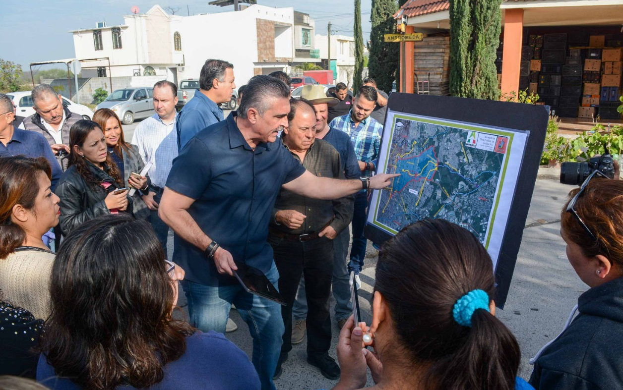 César Garza Villarreal anunció a los presentes, que se ampliará y se canalizará el cauce del arroyo Ébanos, que junto con los trabajos del mega pluvial, ayudará a dar mayor captación de agua y se dirigirá la corriente hacía el arroyo Topo Chico para acabar de tajo con las inundaciones.