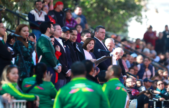 Con beneplácito, la Presidenta Municipal vio un mayor número de participantes en el desfile, tanto en los contingentes, como las familias que acudieron a disfrutar de la actividad que forma parte de la cultura cívica de los mexicanos.