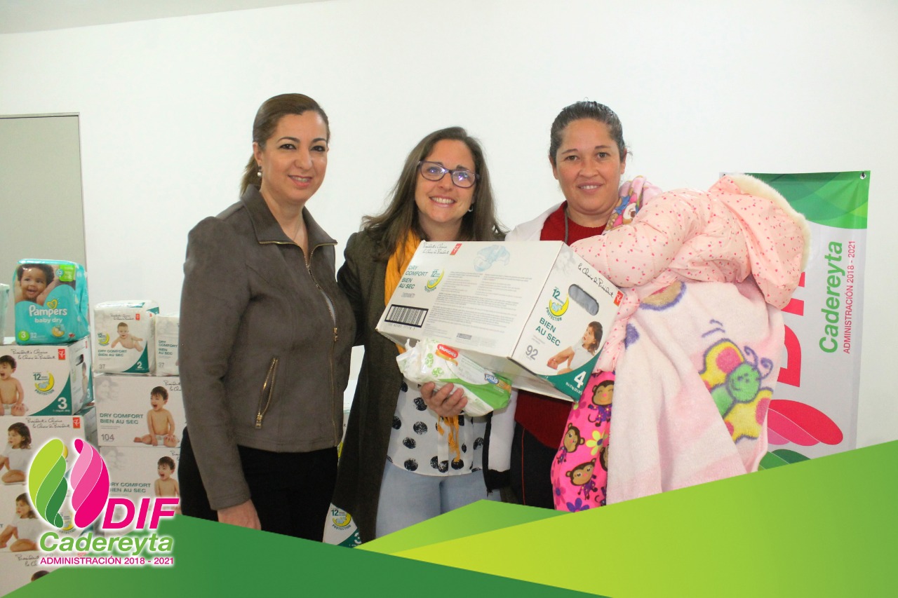 Por su conducto Martha de la Garza, Presidenta del Sistema DIF Cadereyta, agradeció la aportación de poco más de treinta paquetes de distintas etapas de pañales.