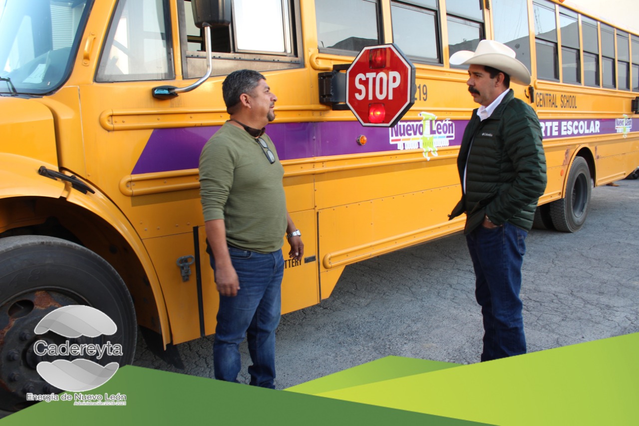 Solicitada la petición en sesión de cabildo del día 29 de noviembre del 2018 de dos Trasportes Escolares al Gobierno del Estado encabezado por el Gobernador Jaime Rodríguez Calderón, la tarde del miércoles 23 de enero, Ernesto Quintanilla Villarreal, Alcalde de Cadereyta, recibió la primer Unidad Nueva.