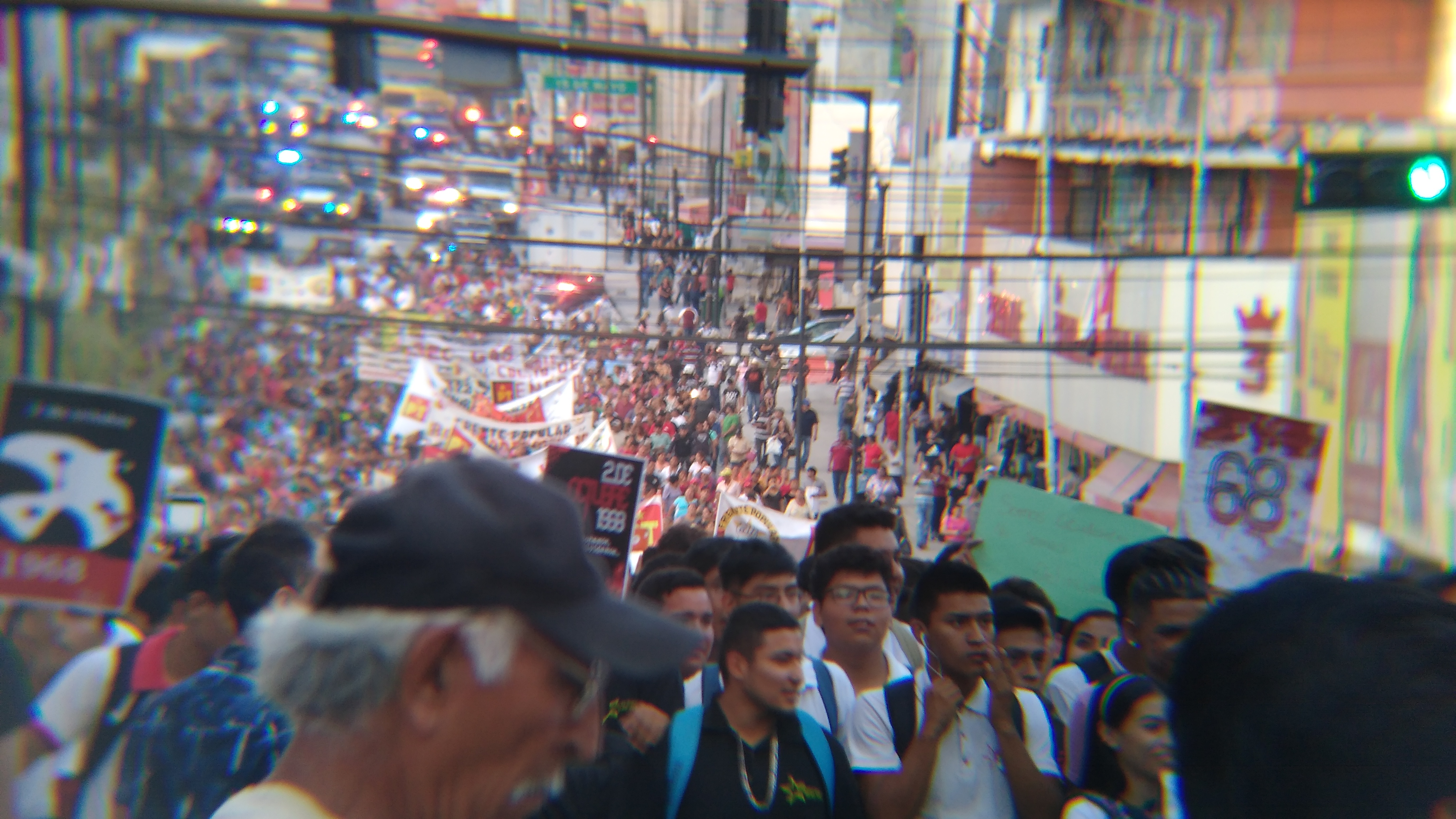 Marchan 5 mil para recordar la matanza de estudiantes en la Plaza de las Tres Culturas en Tlatelolco el 2 de octubre de 1968 y la desaparición de los 43 de Ayotzinapa.