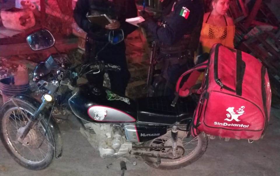 Los elementos policiacos realizaban un rondín de vigilancia por calles del sector, cuando fueron abordados por una mujer quien les comunicó que un hombre había sacado de su propiedad la motocicleta de su esposo.
