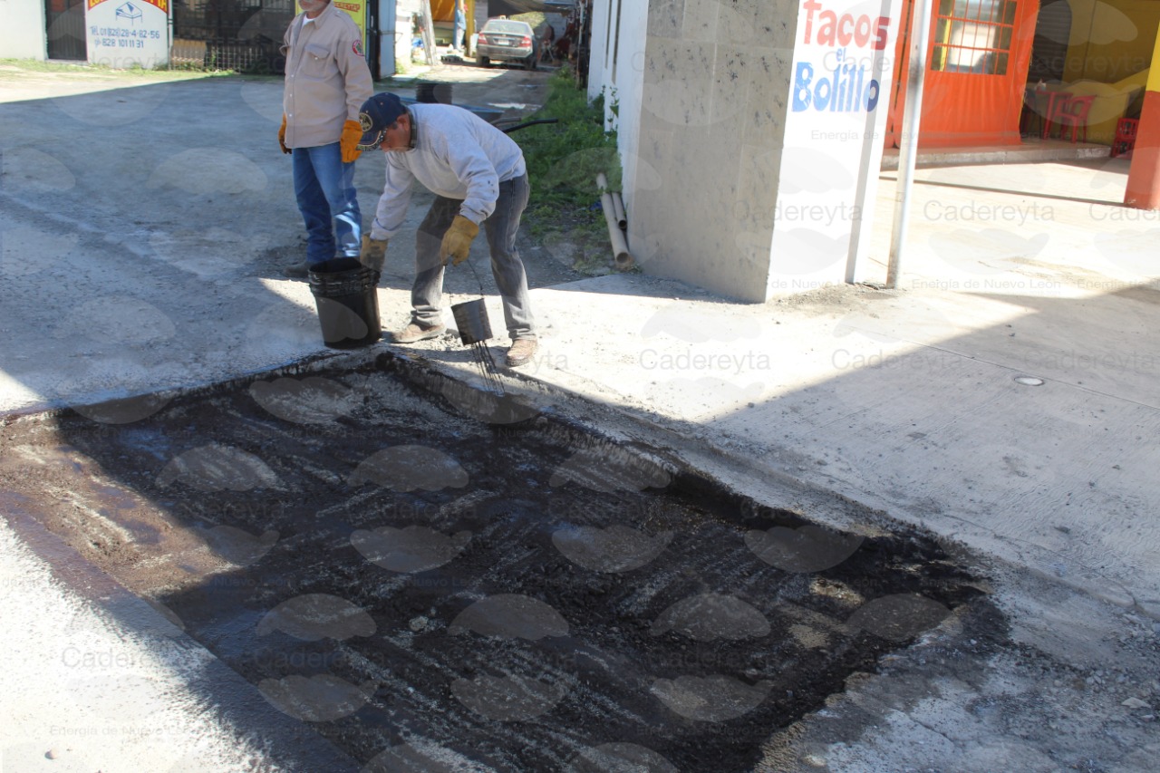 Relizaran trabajos de bacheo en el primer cuadro del municipio de Cadereyta para darle otra cara a las calles de la ciudad.