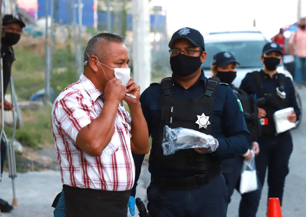 Al sumarse a la prevención de contagios por Covid-19, Policías de Guadalupe recorrerán mercados rodantes y estaciones del transporte público para entregar cubrebocas a quienes no lo porten en la vía pública.