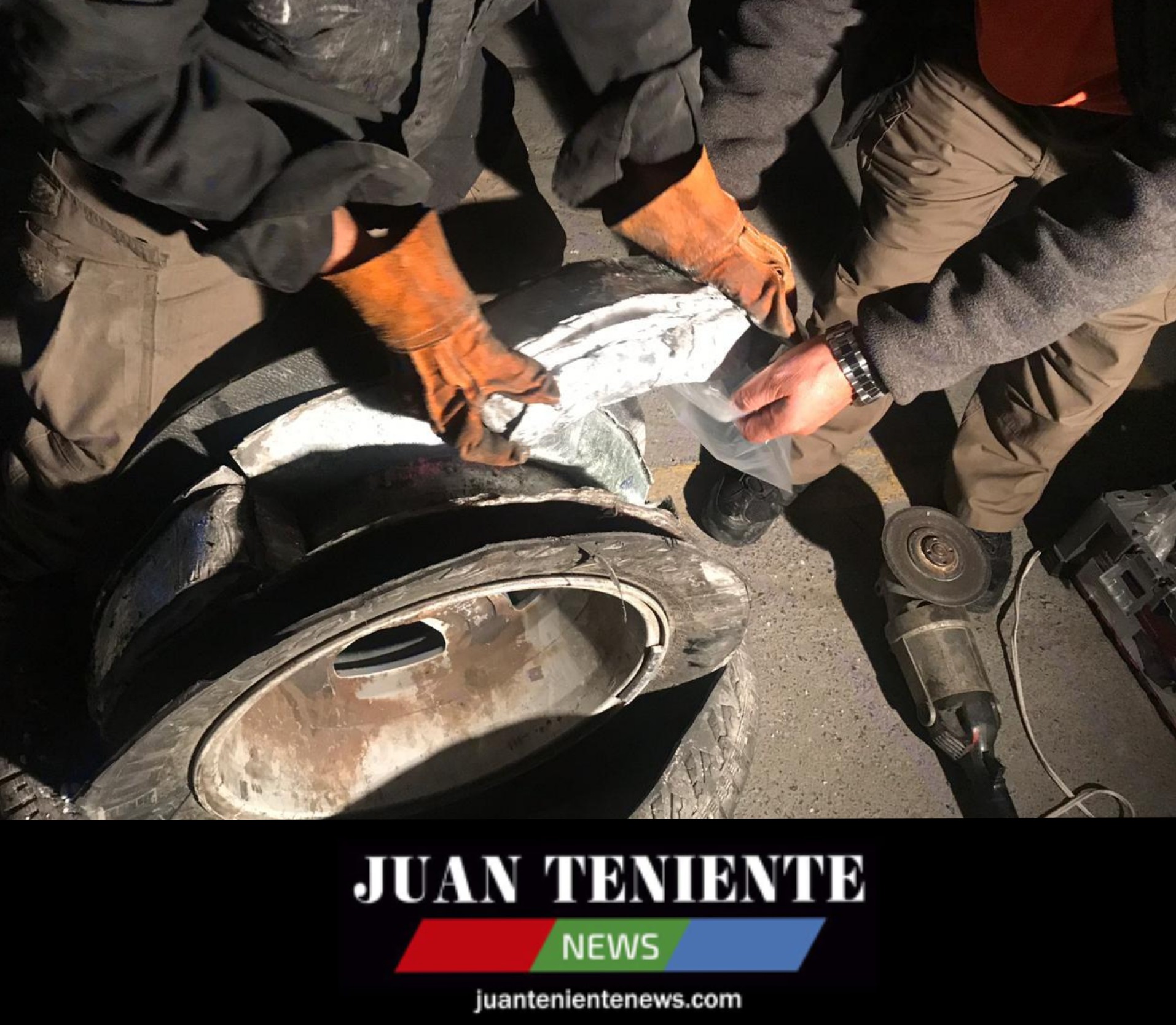 Carlos Leonel “N” y Andrew “N” circulaban en un automóvil con placas de Texas y al llegar al retén de San Roberto en el municipio de Galeana Nuevo León, los agentes Ministeriales Federales detectaron en la llanta de refacción un compartimiento entre el rin y la llanta.