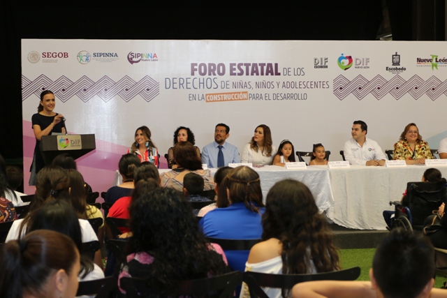 Para generar políticas públicas, definir acciones y planes de trabajo en favor de la protección de la niñez, el DIF de Escobedo y el DIF de Nuevo León realizaron el “Foro Estatal de los Derechos de Niñas, Niños y Adolescentes en la Construcción para el Desarrollo”