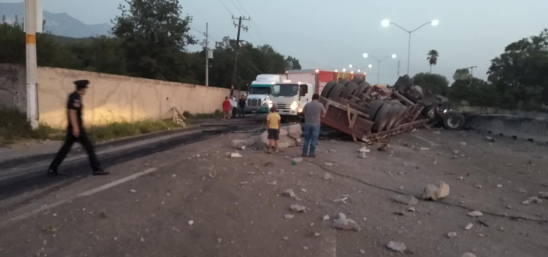 Vuelca trailer y bloque carretera Nacional en Santiago