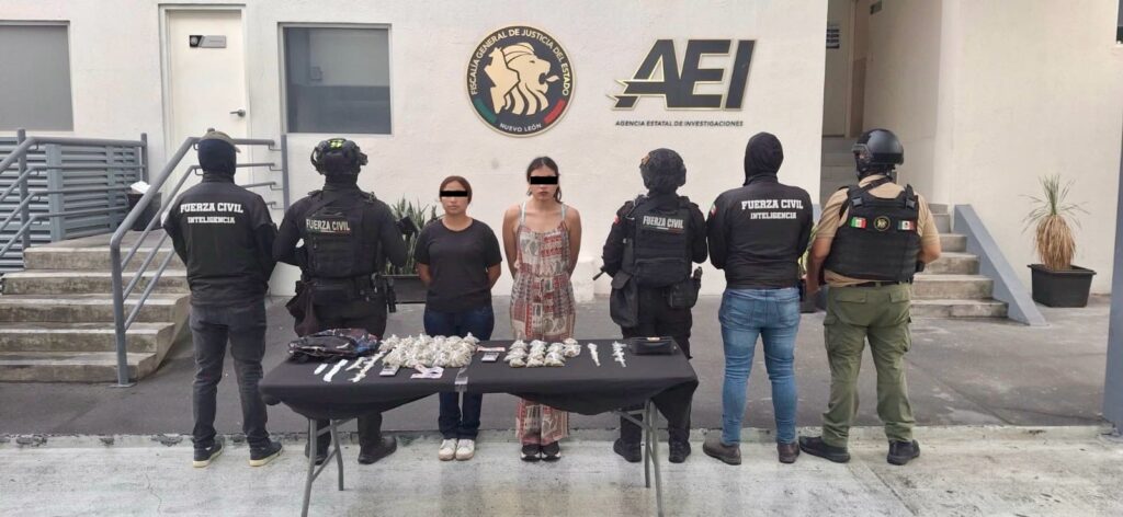 Derivado de trabajos de investigación e inteligencia por parte de la División de Inteligencia de Fuerza Civil y la Agencia Estatal de Investigaciones; dos jóvenes damas fueron detenidas en el municipio de Escobedo, al ser sospechosas de participar en hechos delictivos ocurridos recientemente.