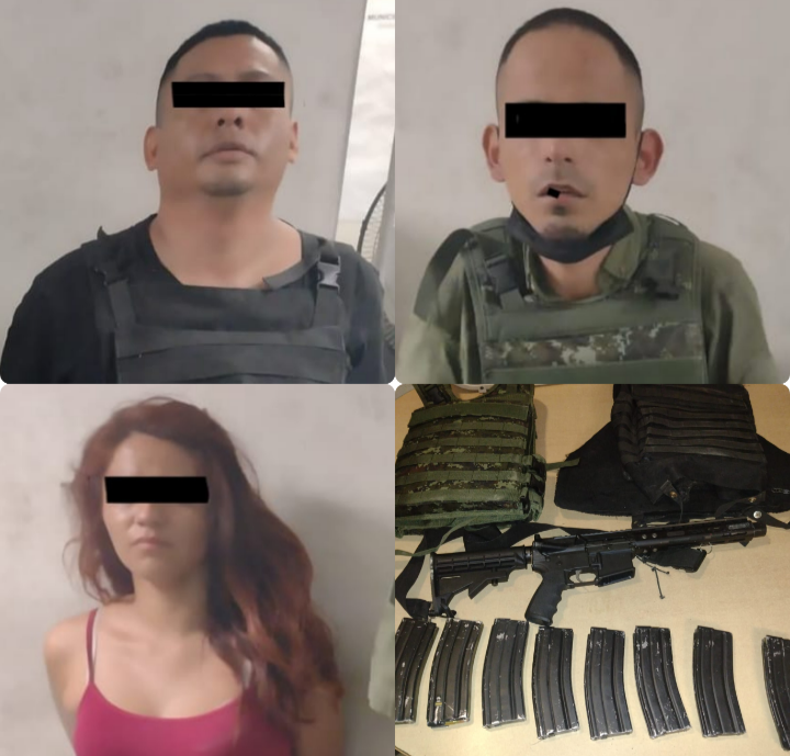 Los dos hombres iban con los chalecos antibalas y las armas largas, la mujer aparentemente solo los acompañaba cuando intentaban entrar a un domicilio en la calle Hacienda del Ciruelo, en la colonia Hacienda del Sol.