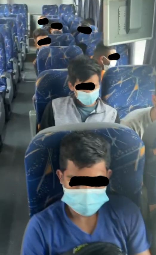 Trasladando a los migrantes al INM para su debido procesamiento.