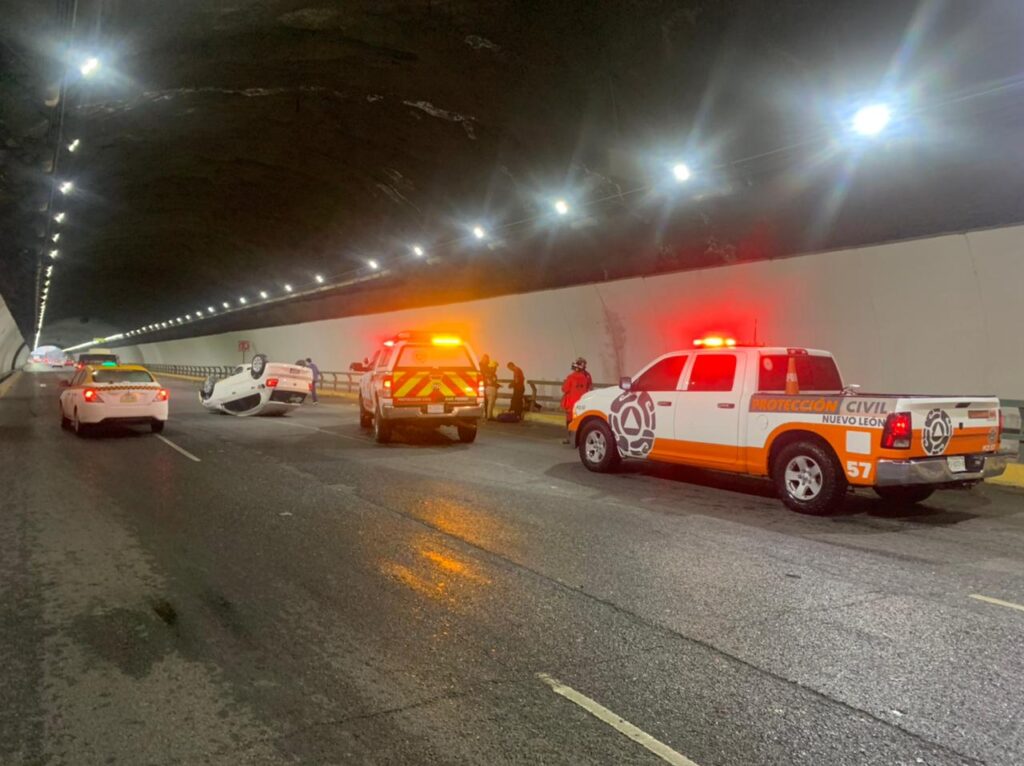 Uno de estos percances se registró en el túnel de la Loma Larga , dónde un vehículo volcó después de impactarse con un camión urbano y otro automóvil.