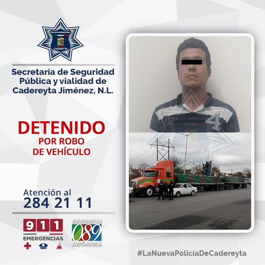Elementos de Seguridad Pública recuperan vehículo de carga cuando el presunto responsable intentaba huir por la autopista Monterrey-Reynosa.