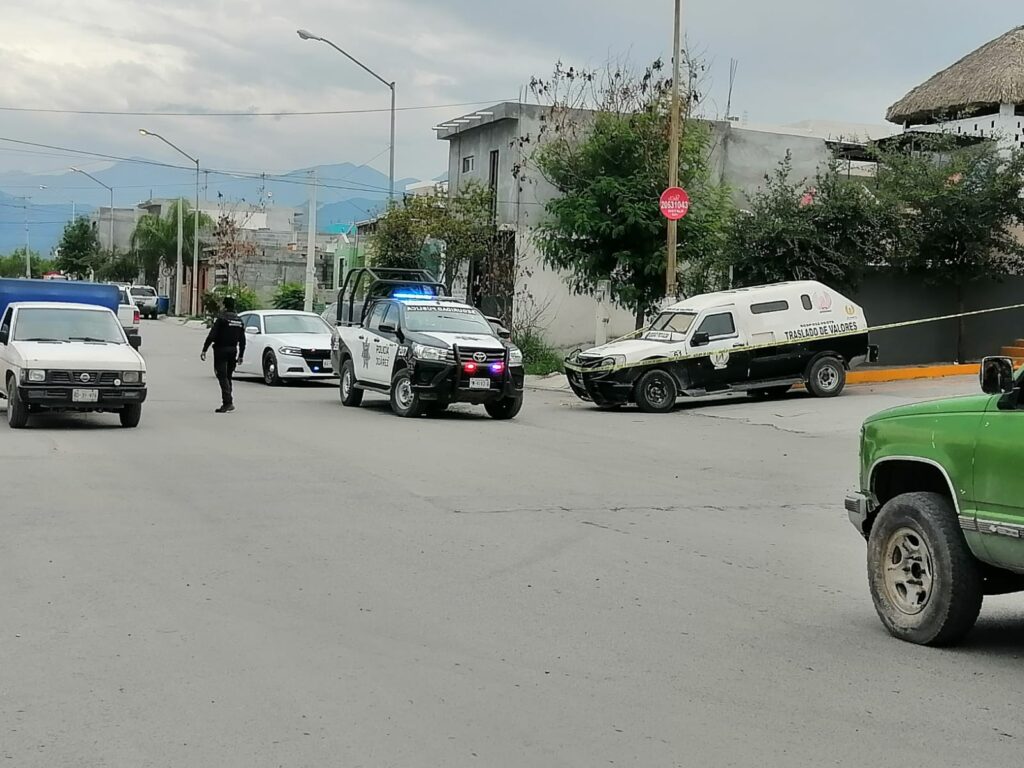 El camión de valores se estacionó en las calle Colinas de la Morena y Prolongación Pablo Livas en la colonia Las Lomas de Juárez Nuevo León.