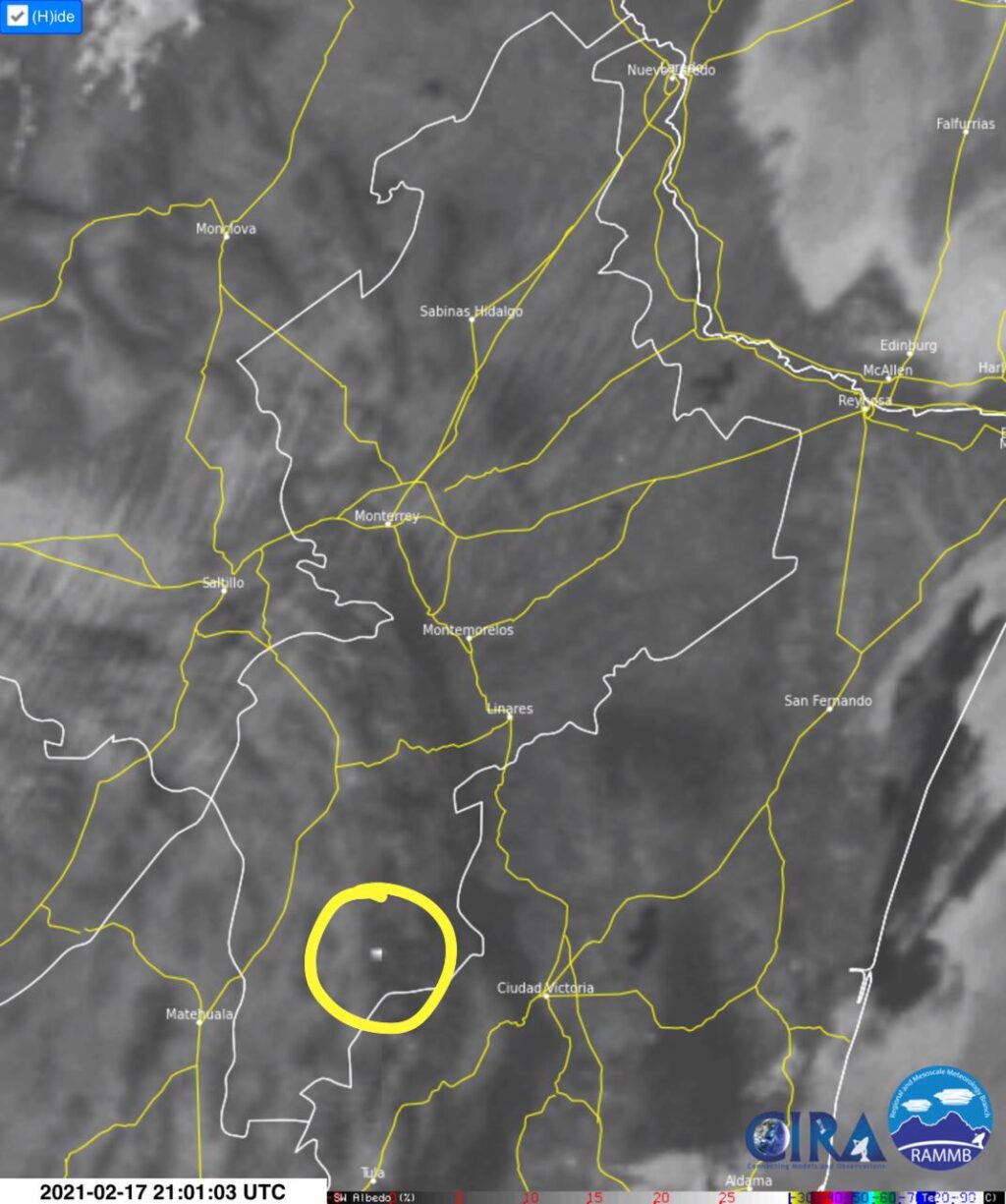 A través del monitoreo de focos de calor realizado por Protección Civil del estado se visualiza el siniestro en el municipio General Zaragoza.