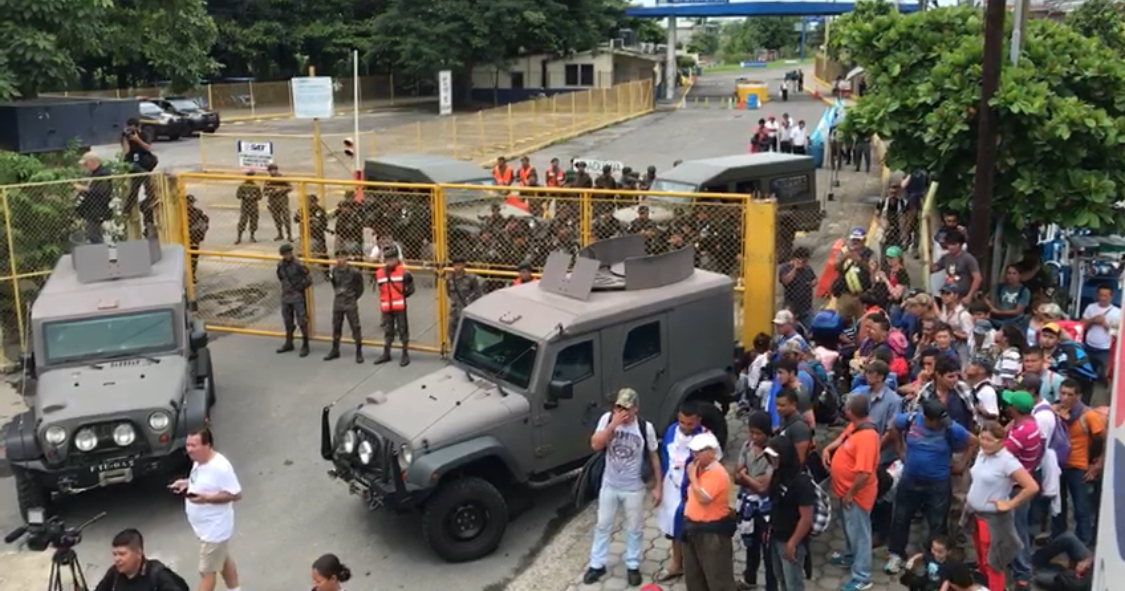 Brincan migrantes hondureños cerco policíaco y se internan en México en el punto fronterizo de Tecún Umán con Guatemala. Al...